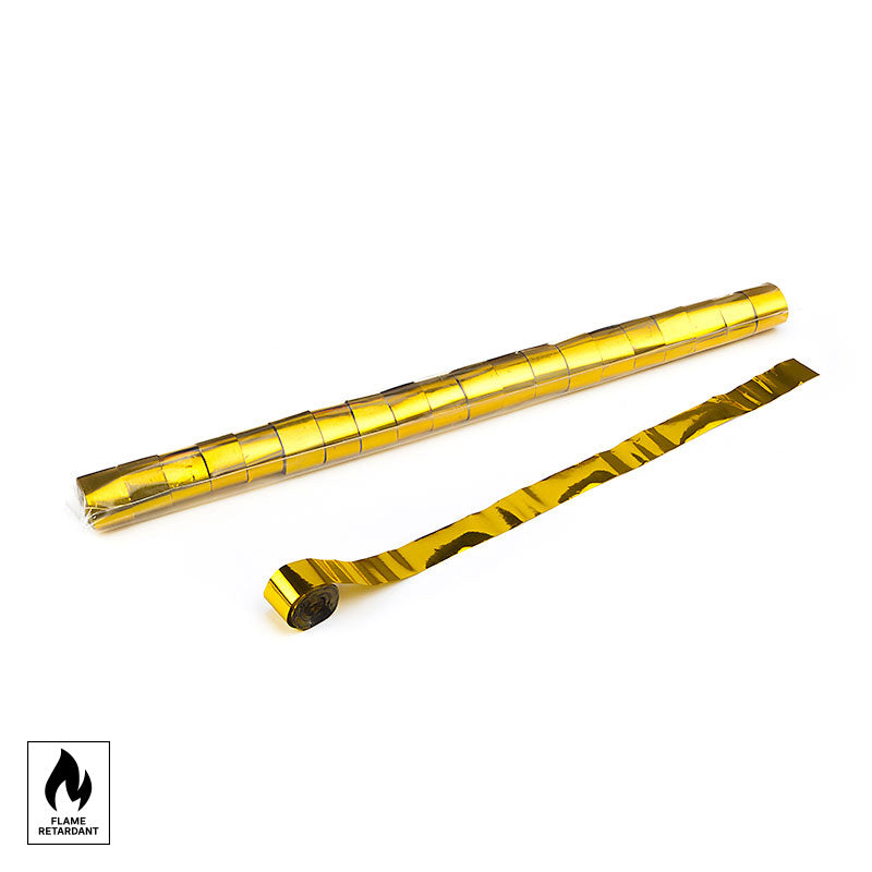 Metallisk stadium streamers til fester, bursdager, bryllup, arrangementer, konserter, festivaler og andre forhold. Flammesikre streamers for profesjonell bruk. Tilgjengelig i polyboks à 20stk. Bestillingsbeløp/pris er per: 1 ploypose | Full eske er: 25 polyposer