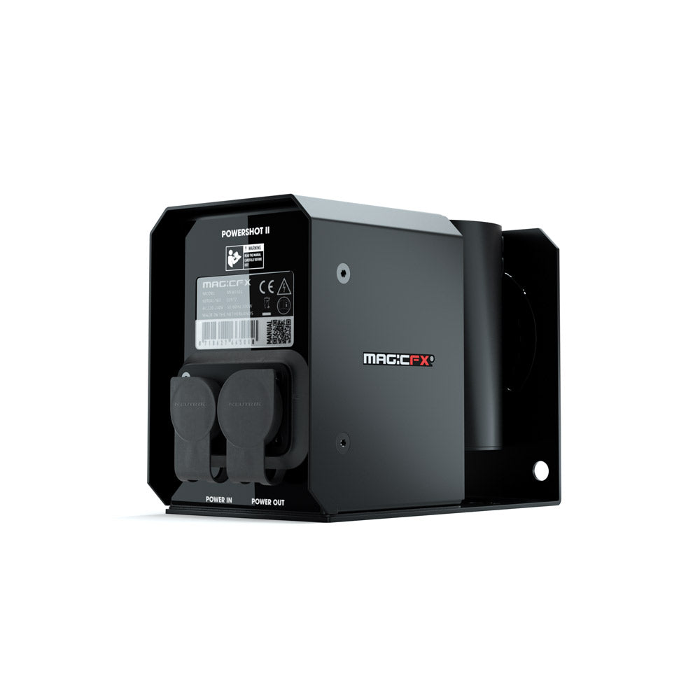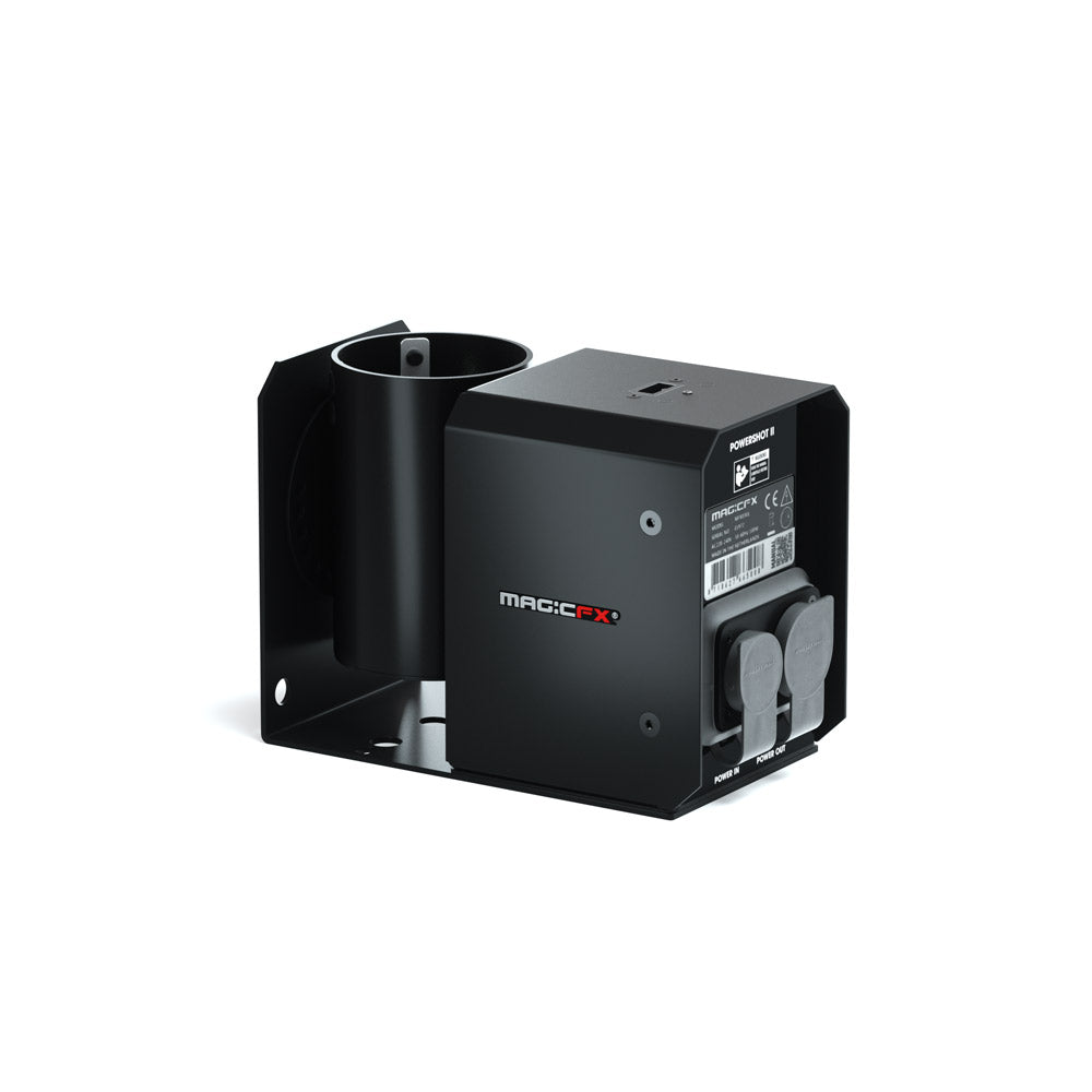 POWERSHOT II er en kompakt avfyringsbase for å avfyre elektrisk konfetti eller streamers. Plasser den på scenen eller monter den i en truss. Koble til en switch pack eller bryter, still inn vinkelen og fyr løs! Skyt konfetti opp til 6 eller 12 meter og streamere fra 12 til 20 meter.