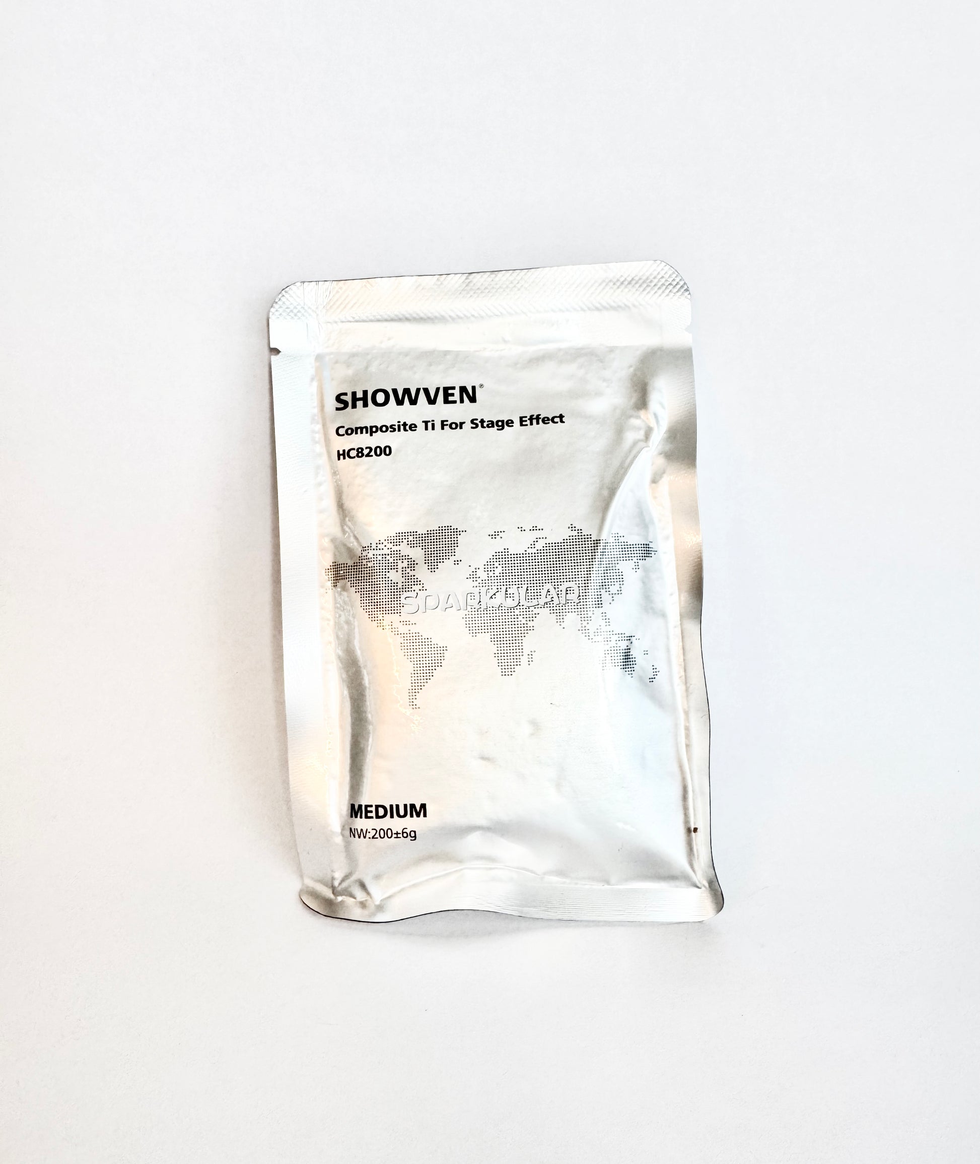Sparkular pulver for sceneeffekter - granulat designet for å generere gnisteffekter. Tilgjengelig hos oss i medium og stor pulver type, pakket i vakuumposer (200g). 1 eske inneholder 12 enheter av vakuumposer. Kompatibel med Showven Sparkular-maskin.